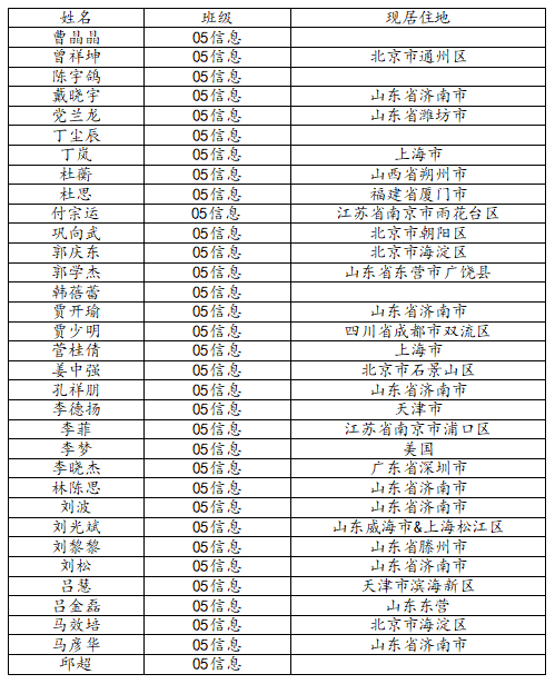 37000cm威尼斯2009届信息与计算科学班校友名录