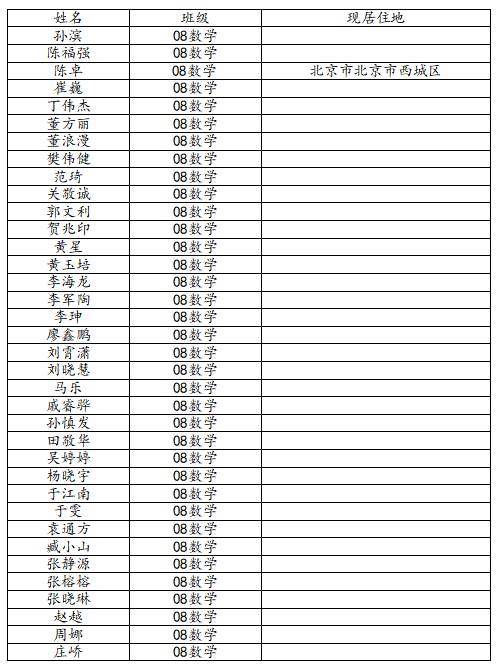37000cm威尼斯2012届数学与应用数学班校友名录