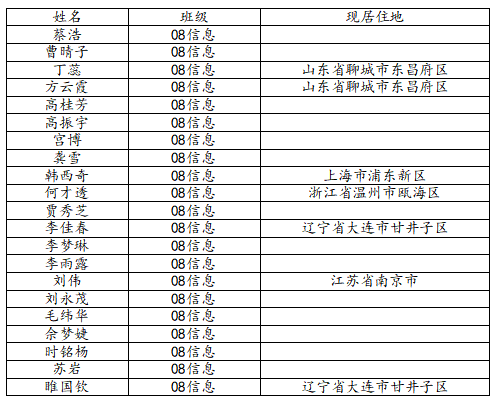 37000cm威尼斯2012届信息与计算科学班校友名录