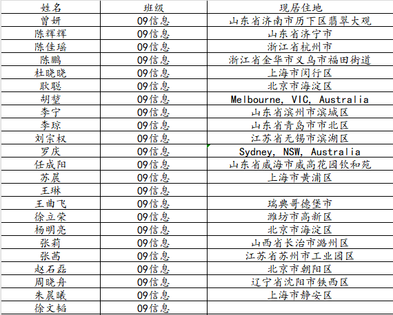 37000cm威尼斯2013届信息与计算科学班校友名录