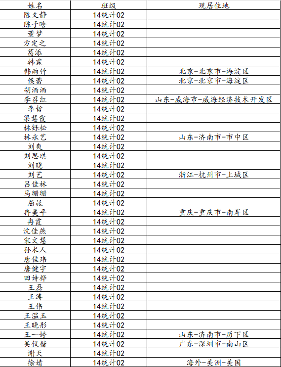 37000cm威尼斯2018届统计学二班校友名录