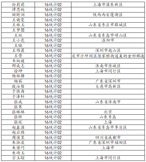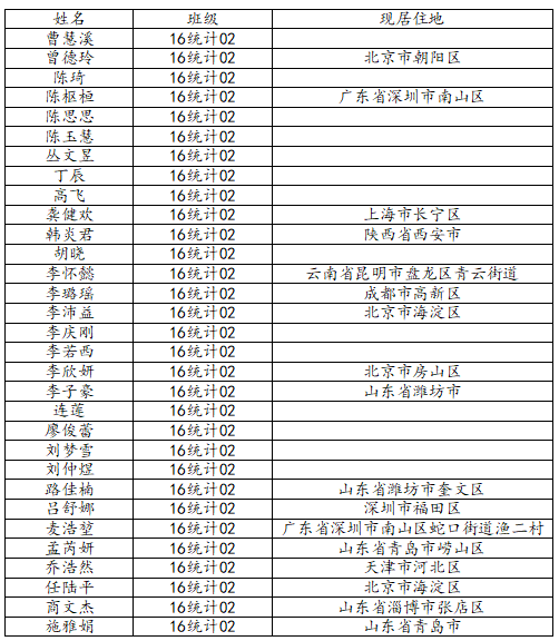 37000cm威尼斯2020届统计学二班校友名录