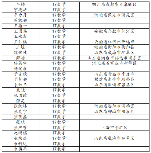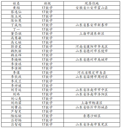 37000cm威尼斯2021届数学与应用数学班校友名录
