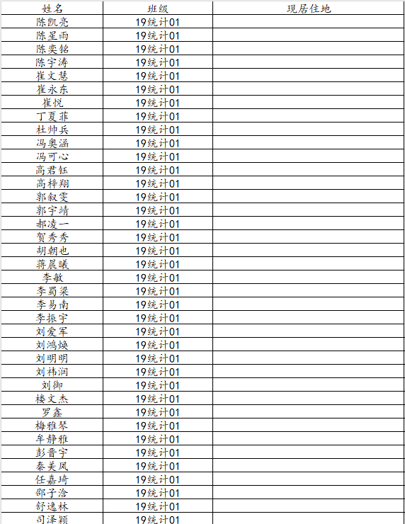 37000cm威尼斯2023届统计学一班校友名录
